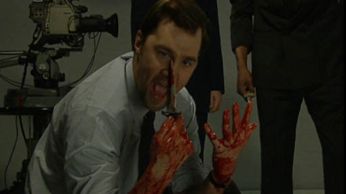 An adaptation of Act 3 Scene 1 of William Shakespeare's 'Julius Caesar' with actors Patrick Robinson and David Morrissey. The scene is set in a TV studio with Caesar as the show's host; a brief introduction by the actor playing Mark Antony explains why they have done this. The brutal murder of Caesar by his colleagues is depicted. It starts when Caesar says, 'I could be well moved if I were you...' to when Cassius says...'Ay, every man away.' The clip is accompanied by music and sound effects that are used at various points of tension throughout.