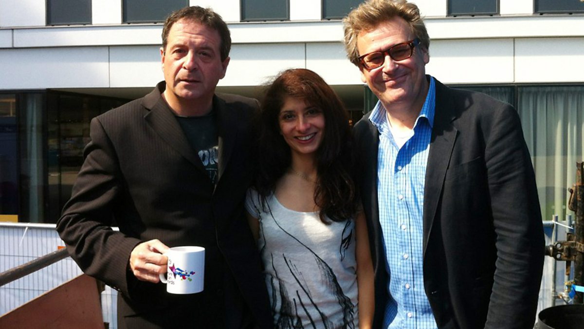 Stars Mark Thomas, Shappi Khorsandi and Greg Proops join Fred on the sofa.