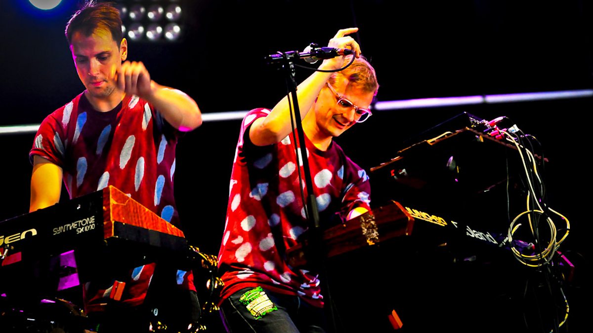 Django Django perform Default on the Radio 1 / NME Stage at Reading Festival 2012.