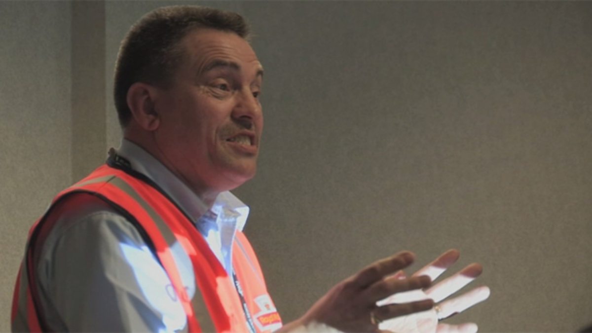 Gareth Malone and choir member Pete talk to the Royal Mail managers about the benefits of the choir - both to the company and staff - ahead of their big performance.