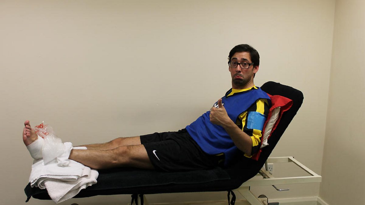 Colin Murray goes over on his ankle during 5 live-a-side. He had to go to hospital, but it didn't prevent 5 live setting a world record for most players in a continuous match.