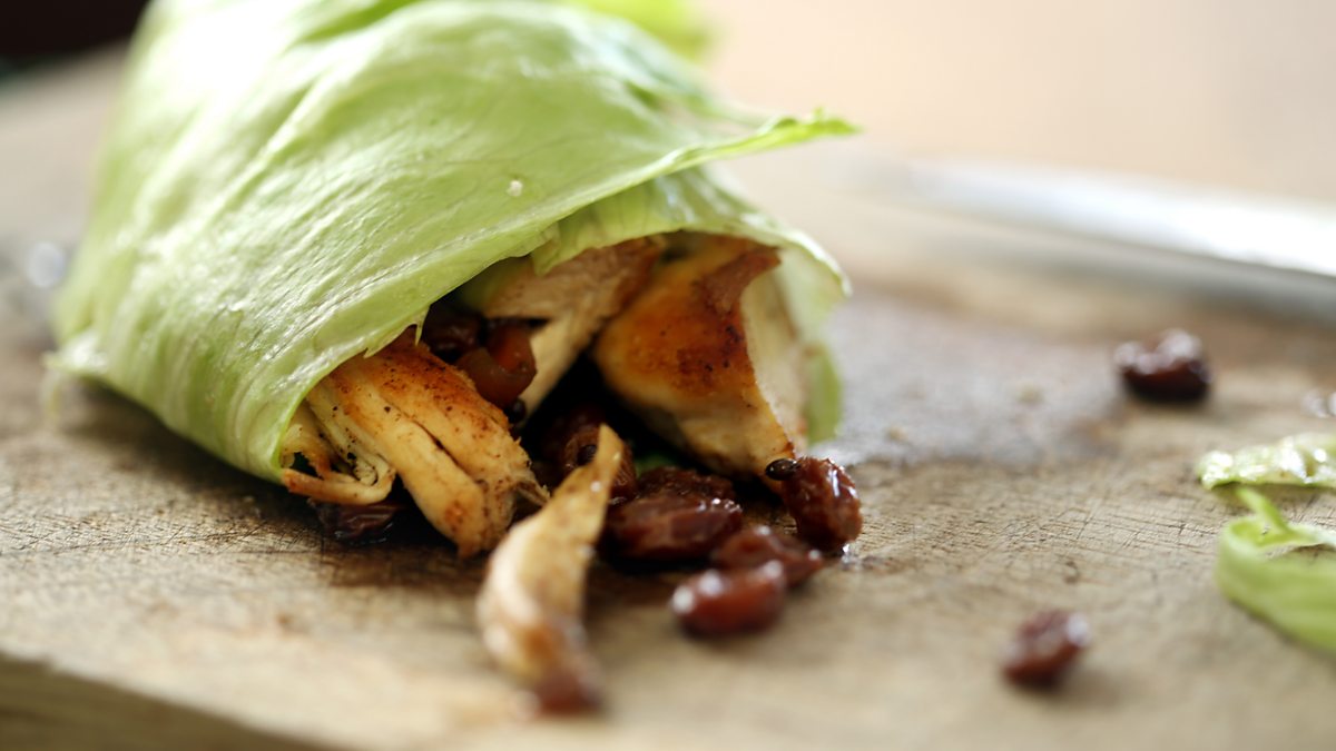 Fried in five-spice and served with chutney and lettuce - a light, simple way to enjoy that spare piece of leftover chicken.