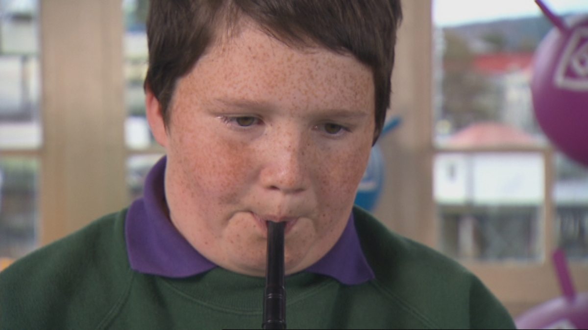 Angus, a bhuannaich farpais an fheadan fo aois 13 bliadhna.