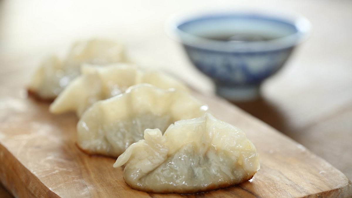 Filled with prawn, ginger and spring onion, these lightly fried dumplings are simple to make, and full of bright flavours.