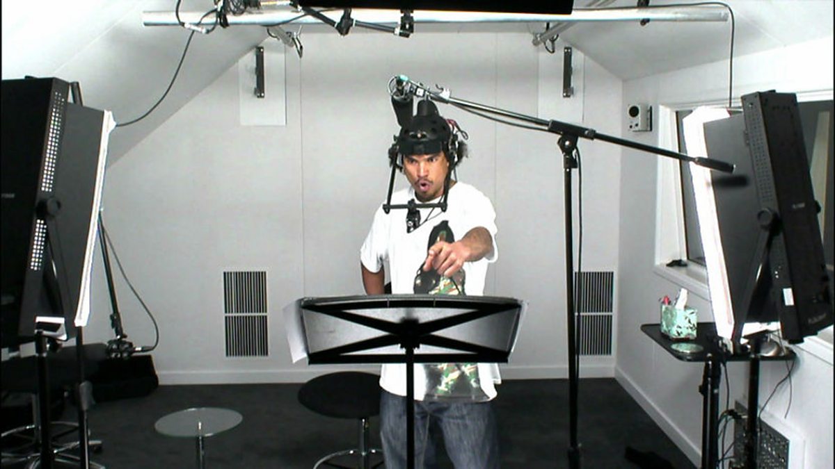 Dev dons a headcam to act out a scene from the game Castlevania with Patrick Stewart. Taken from the Story of the Blockbuster Game with Dev going behind the scenes of the gaming industry. Hear the first of the three part series on Monday 5th November at 9pm on Radio 1