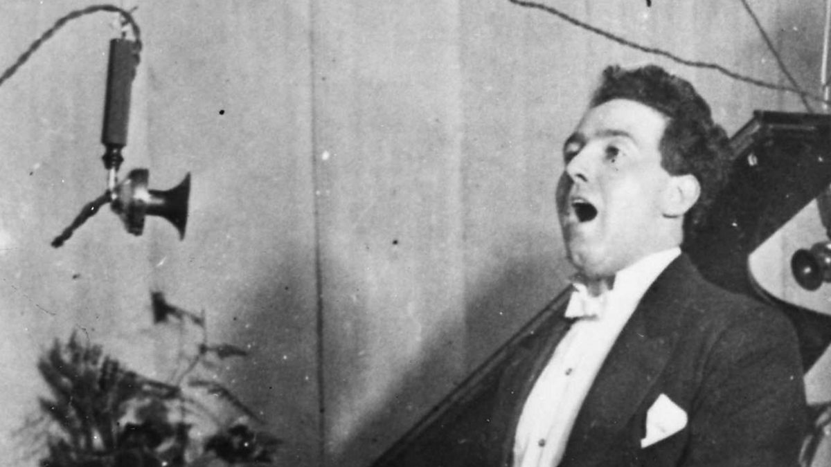 Remarkable microphone technique from baritone Mostyn Thomas who remembers the first Welsh words on radio singing out from BBC Wales.