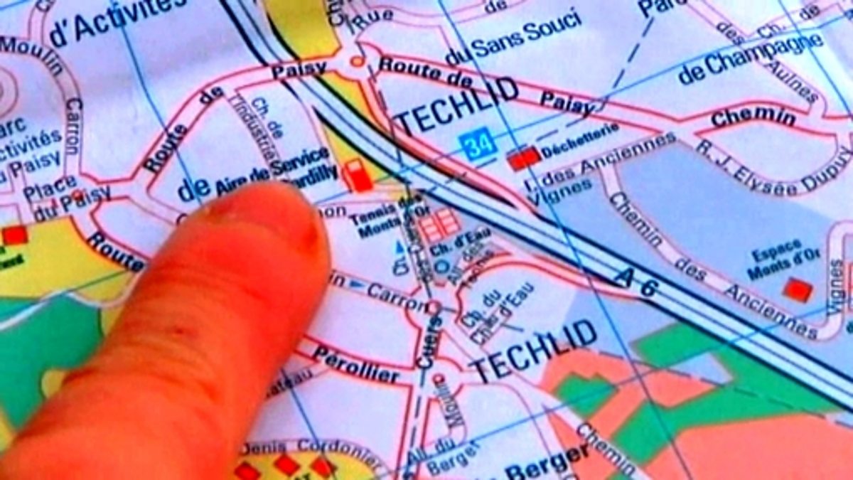 The Ma France film crew are looking for their hotel in Lyon. Nathalie and the film crew arrive at a service station. They are some distance from the hotel and can’t work out a suitable route on the map. Nathalie phones the hotel to ask for directions but they still get lost and have to ask a passerby for more help.