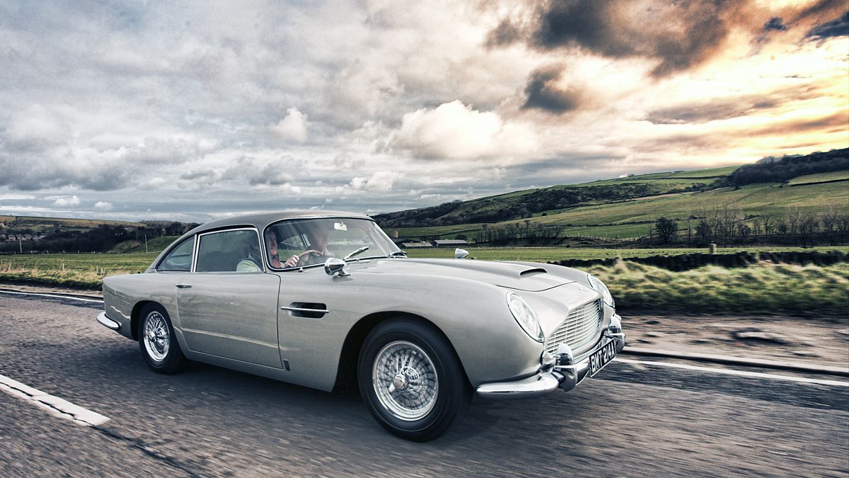 Chris Evans's collection of Famous Five cars for Children in Need - the Italian Job Mini Cooper, James Bond's Goldeneye Aston Martin DB5, a 1987 Lamborghini Miura, a 1970 E-Type Jag and a 1930 Bentley Meteor