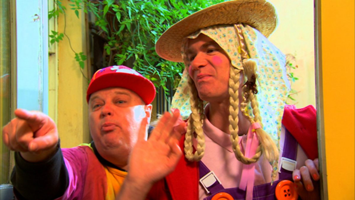 At the Panto House, Buttons is forced to do the washing up. The sink is full of dirty pots. Jack and Jill come to the door and want Buttons to fill their bucket with water. Buttons' problem is that the sink is too full to put the bucket under the tap. Jill suggests he fills it with the 1 litre jug. Jack suggests he uses the empty Fizz Wizz Pop bottle. Buttons thinks it would be best to use a mug. The question is, which container will fill the bucket the fastest?