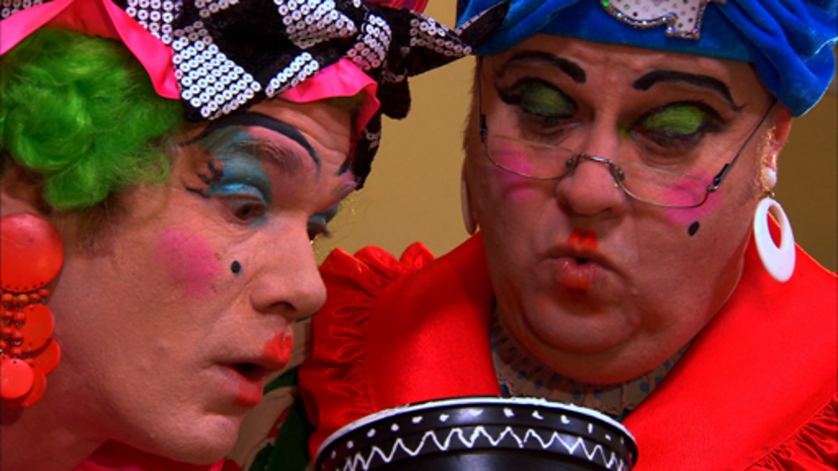 When the post arrives at the Panto House, the Ugly Sisters receive an invitation to Prince Charming and Princess Cinderella's Christmas Eve Ball. They look at the calendar and circle today's date - 6th June. They have a packet of seeds for the occasion: 'Grow Your Own Pumpkin Carriage – from seed to carriage in just 6 months'. They plant the seed and refer again to the calendar. Will it be ready in time for the ball?