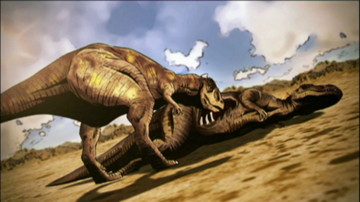 A short animation featuring a palaeontologist unearthing a fossilised bone showing traces of tooth damage. We also see Carcharodontosaurus competing over prey and the ensuing fight which caused the markings to be made on this fragment of tail bone.