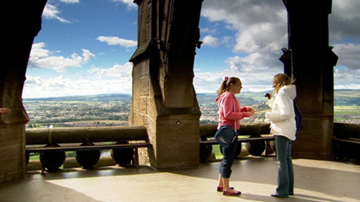 An introduction to Stirling in Scotland and the surrounding area. Presenter Tess climbs the Wallace Monument for views of Stirling. The River Forth twists its way to the sea with its meandering course and floodplain, also called the Carse, clearly visible. The views also take in the Ochil Hills. The Wallace Monument overlooks an important crossing point on the River Forth, which is also the site of many historical battles.