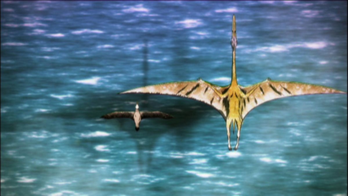 A short animation featuring Hatzegopteryx soaring above the ocean and standing side-by-side with a giraffe.