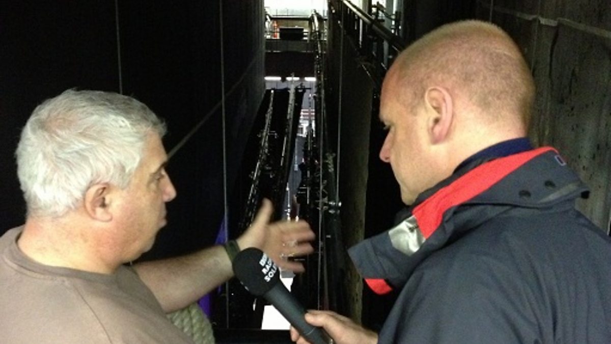 The Mayflower Theatre's Steve Jarrett explains the back stage operation to Neil Sackley