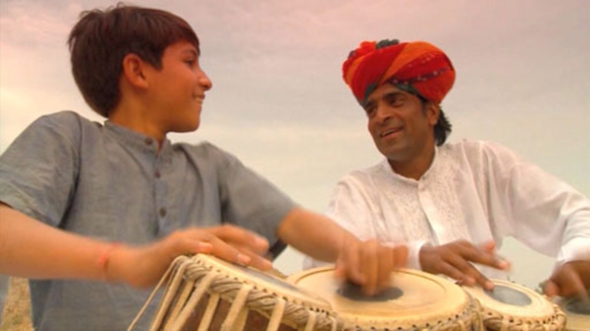 This is the story of a young boy who plays a traditional Indian drum called a tabla. He takes his inspiration from nature and shows us the animals such as cows and monkeys which inspire the rhythms that he plays. He explains their rhythms and plays them for us. We then follow him to the desert where he and his sister perform with a gypsy band and a dancer.