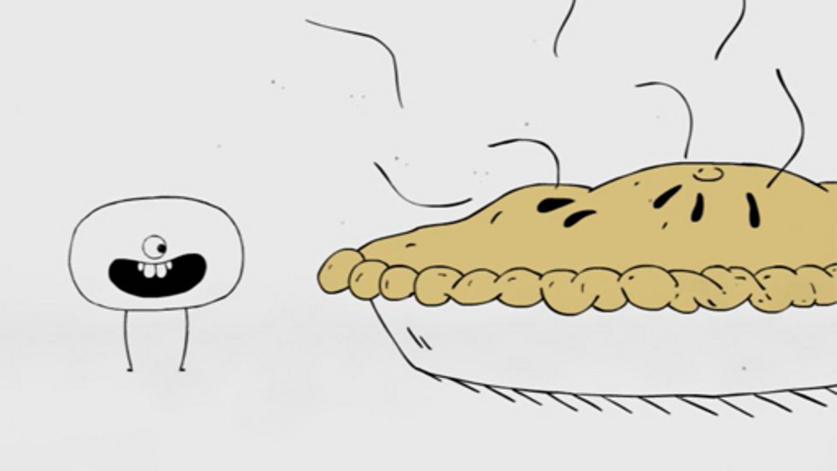 An animated character gives a short explanation of how the smell of food can make us want to taste it or warn us not to eat it.