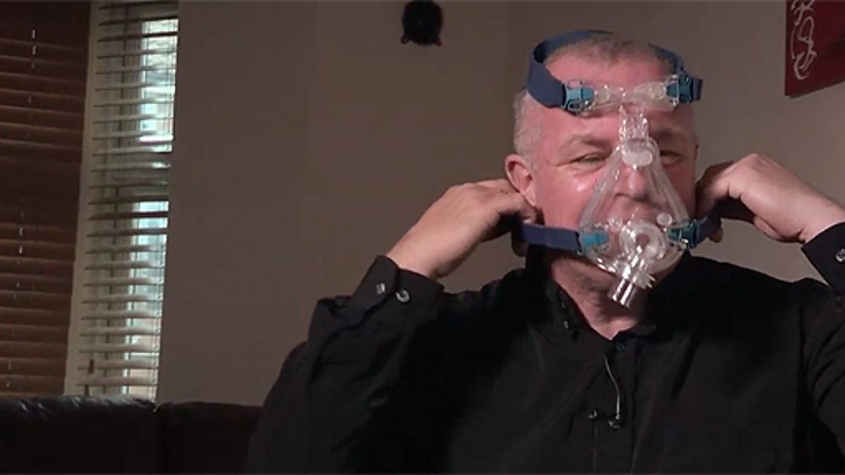 Paul introduces the CPAP machine and mask, which should treat his sleep apnoea, to his partner Claire.