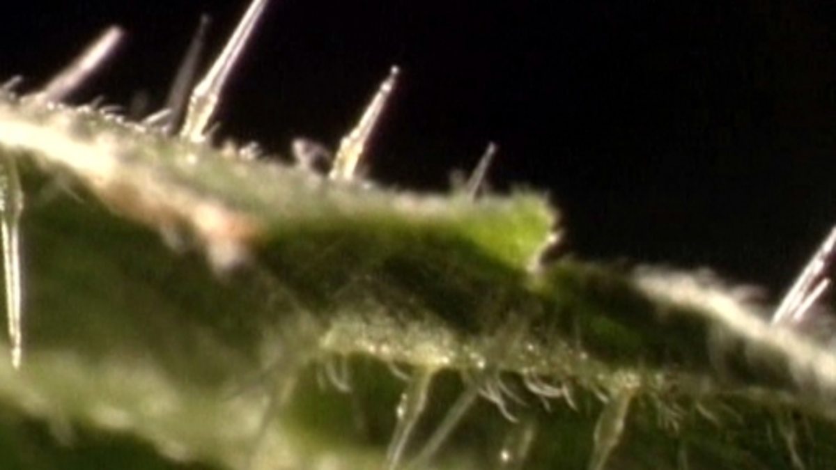 How can something as soft as a nettle sting a person? The hairs on the nettle leaves that deliver the stinging poison are very sharp. They have a surface area at their tips about one-fifth of that of a pin, so only a small amount of pressure or force is needed to puncture surfaces like a person's skin or a balloon.