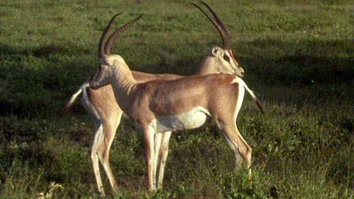 Although they have horns, male Grant's gazelles rarely fight. Instead they assess a rival's strength by a parallel walk and circling and head nodding display. This restraint avoids the risk and energy expenditure of a fight. Finally one gazelle wins and the other walks away.
