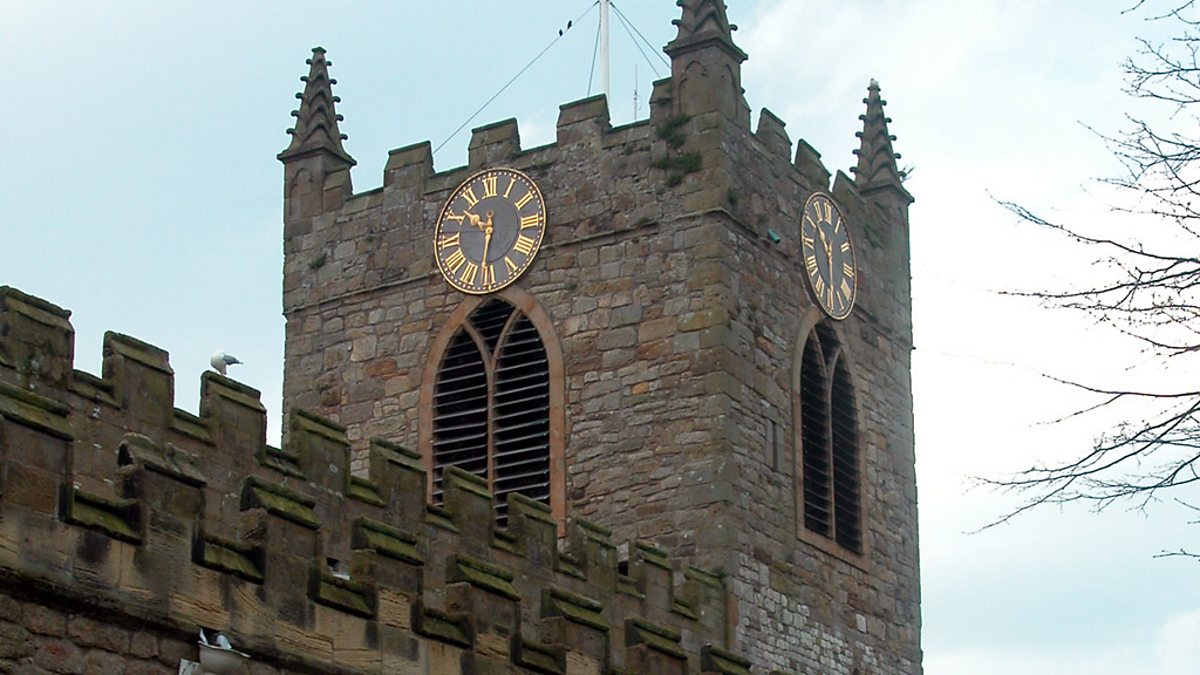 John Wyn Jones yn adrodd chwedl clociau Biwmares wrth Aled Sam.