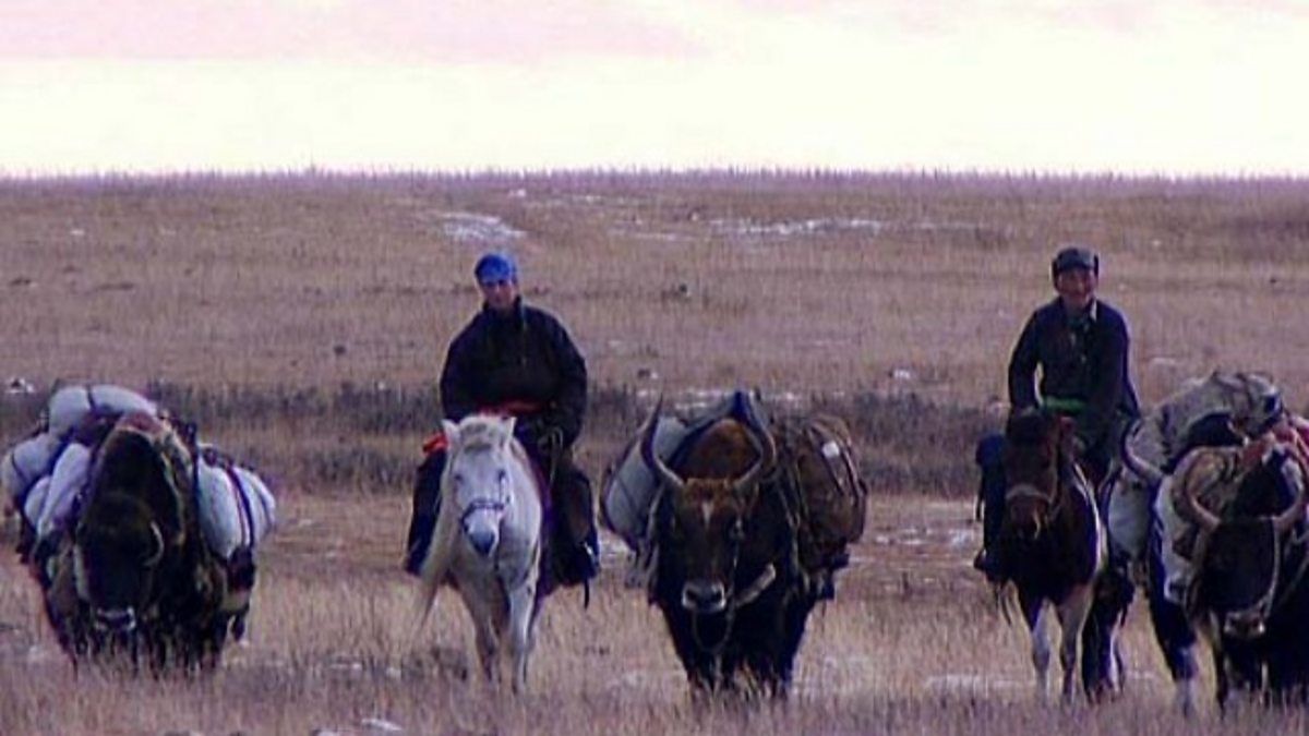 Exploration of lifestyles of the Darhad tribe, a nomadic people living in Mongolia. In the autumn, the tribe migrates on horseback over the mountains to the winter pastures. This clip shows preparations for the journey, including distribution of the winter salt for animals.