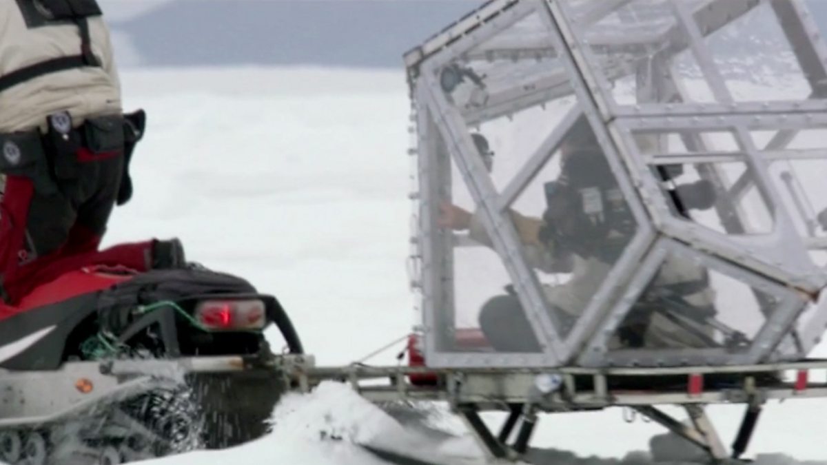 Gordon and crew test the 'ice cube', a polar bear-proof and filming hide prototype.