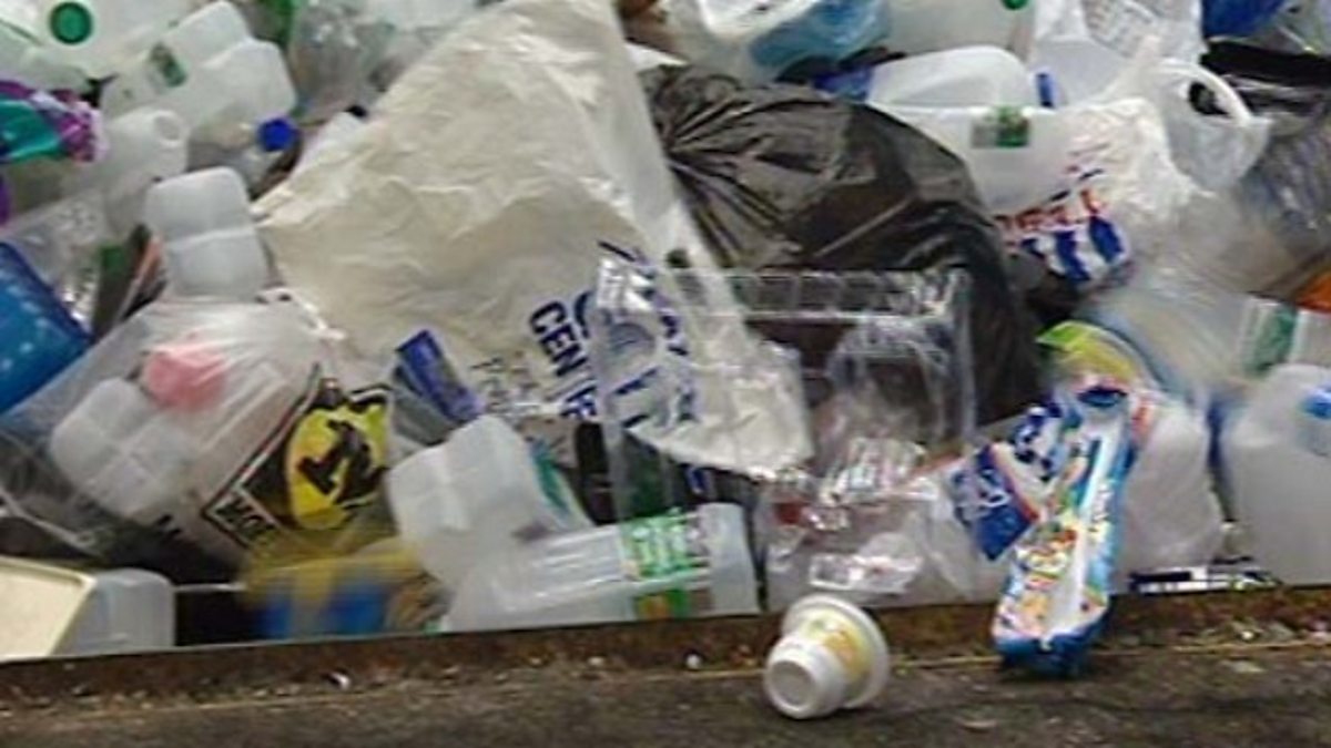 Exploration of the waste recycling process, looking at the types of products made from recycled waste materials. Plastic is recycled into fleeces, cans into cars, paper gets sent to paper mills and textiles are sent to charities. Interview with the manager of the plant on consumers' reactions to recycling.
