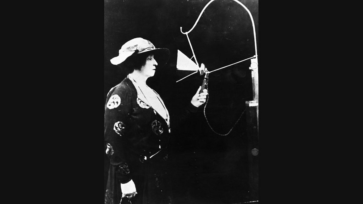 (Image: Dame Nellie Melba with a microphone in 1923)