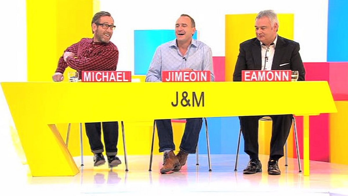 Web exclusive: Michael Smiley spots the chance to show a bit of leg with Jimeoin and Eamonn Holmes.