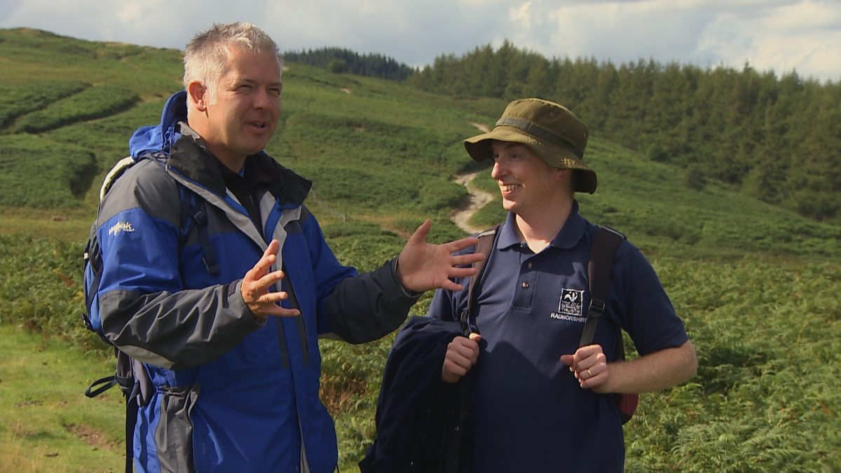 Derek and Julian walk up Cwmdeuddwr Common overlooking Rhayader.