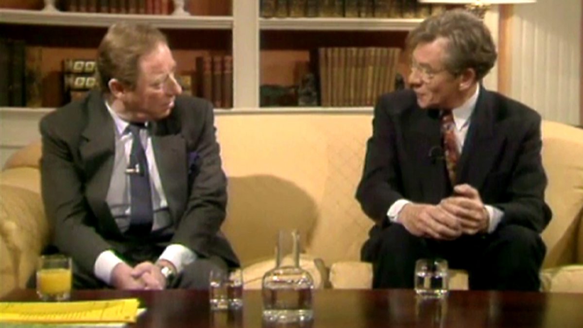 Actor Ian McKellen has joined the equality group Stonewall to oppose Section 28 of the Local Government Act, which prevents the 'promotion of homosexuality' in schools. He participates in this forthright discussion about the repercussions of the Act alongside Sir Ivan Lawrence MP, chairman of the Home Affairs Select Committee, who vigorously defends the government's position.