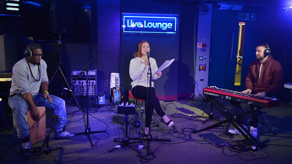 Katy B in the Live Lounge for Annie Mac on the 12 hour dance marathon.