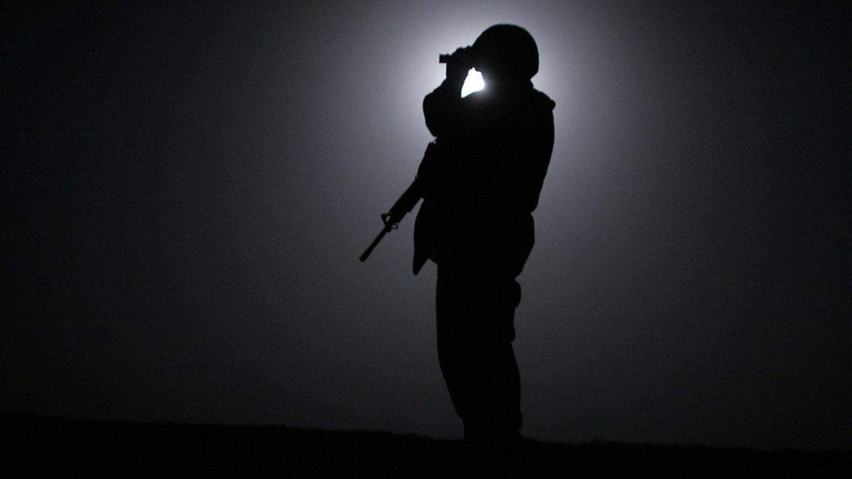 (Image: An armed US Marine with night vision goggles, in silhouette on night patrol in Iraq. Credit: Getty Images)