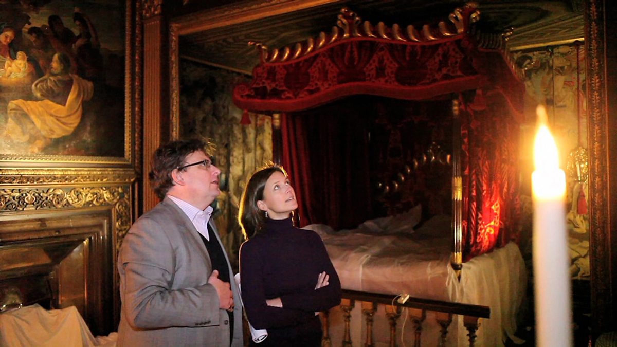 Katie Derham, Lars Tharp and steward William Brown discuss the castle's Baroque treasures.