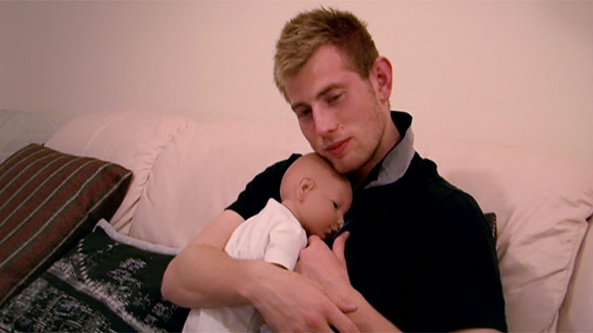 Expectant father Callum gets to grips with a rather awkward substitute baby.