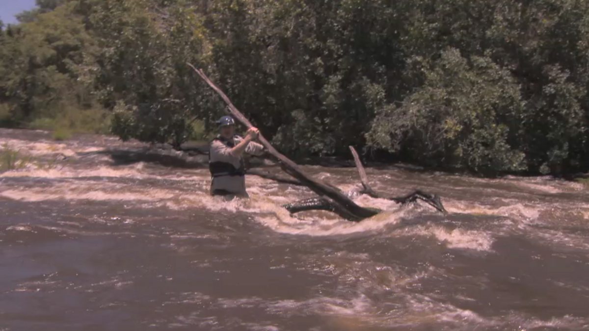Dara O'Briain gets in trouble on a nasty rapids section of the Zambezi.