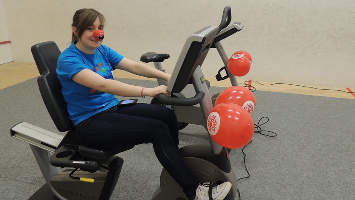Janice Ann 's sgoilearan Bun-sgoil Steòrnabhaigh a' dèanamh 'Bikeathon'.
