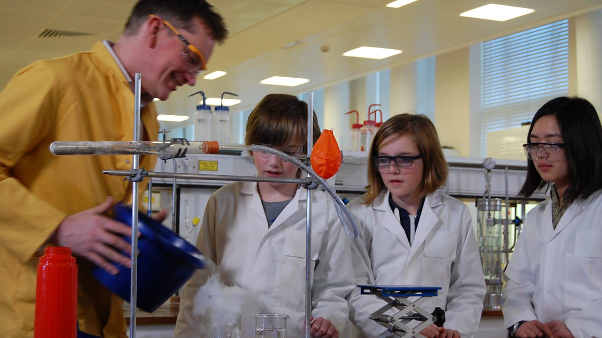 Dr Peter Wothers performs a series of chemistry experiments in his laboratory at the University of Cambridge’s Department of Chemistry. The theme is one of the ancient alchemical elements, ‘Air’. He invites three Key Stage 3 students to his laboratory to help him. They begin by exploring the gases that make up the air around us. Next they measure the density of carbon dioxide. The team then extract carbon dioxide from calcium carbonate and create ‘dry ice’. Finally they explore how limewater is made.