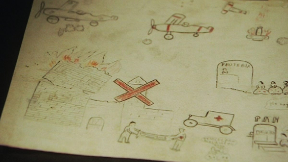 Story of Welsh republicans who fought in the Spanish Civil War from 1936 on and of Basque children evacuated to Old Colwyn in 1937 after the battle of Guernica. Examples of their drawings from that time are discussed.
