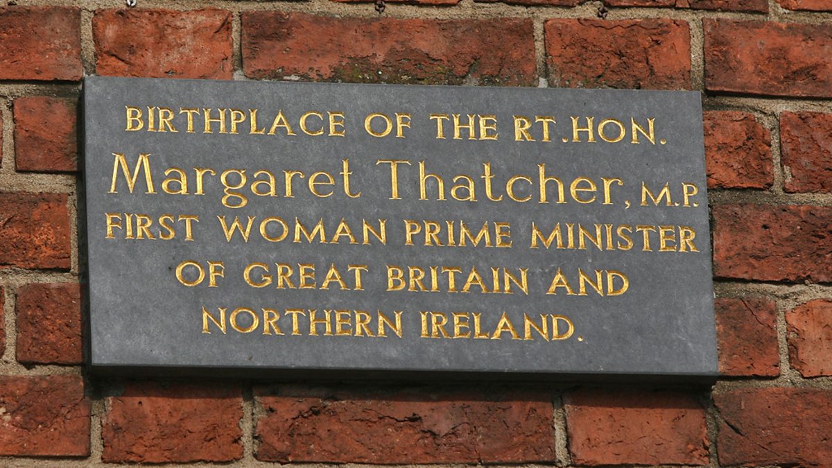 (Image: A plaque above a health shop that now occupies the building where former British Prime Minister Margaret Thatcher was born in Grantham in northern England. Credit: LINDSEY PARNABY/AFP/Getty Images)