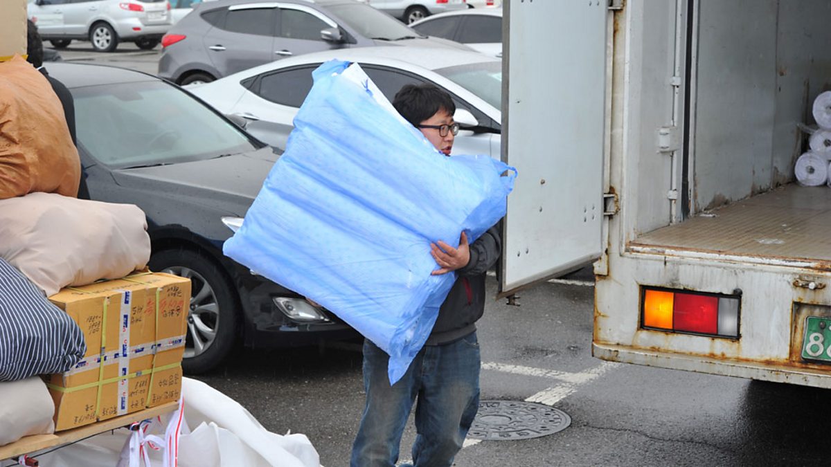(Image: South Korean workers deliver boxes from the Kaesong industrial complex inside North Korea, Credit: AFP/Getty)