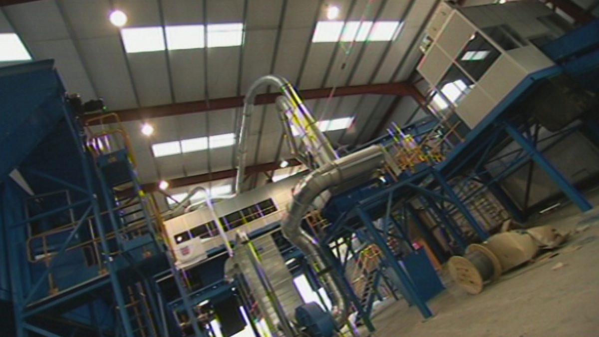Showing a new recycling plant in Cardiff, as it came on stream in 2006, and exploring the processes envisaged in the plant to reprocess the city's waste.