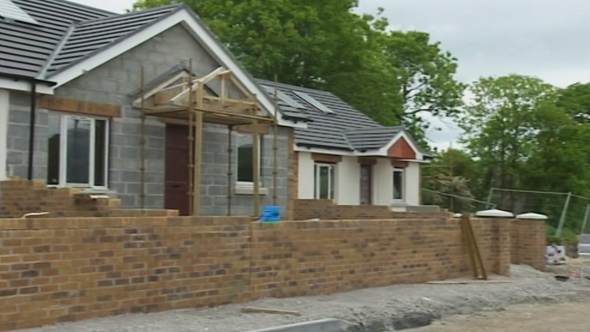 Discussion with the manager of the Awel Aman Tawe ecological housing developers explaining uses of sustainable features in a housing development in West Wales in 2004 - includes use of wood pellets, solar heating from solar panels, flax insulation and biomass.
