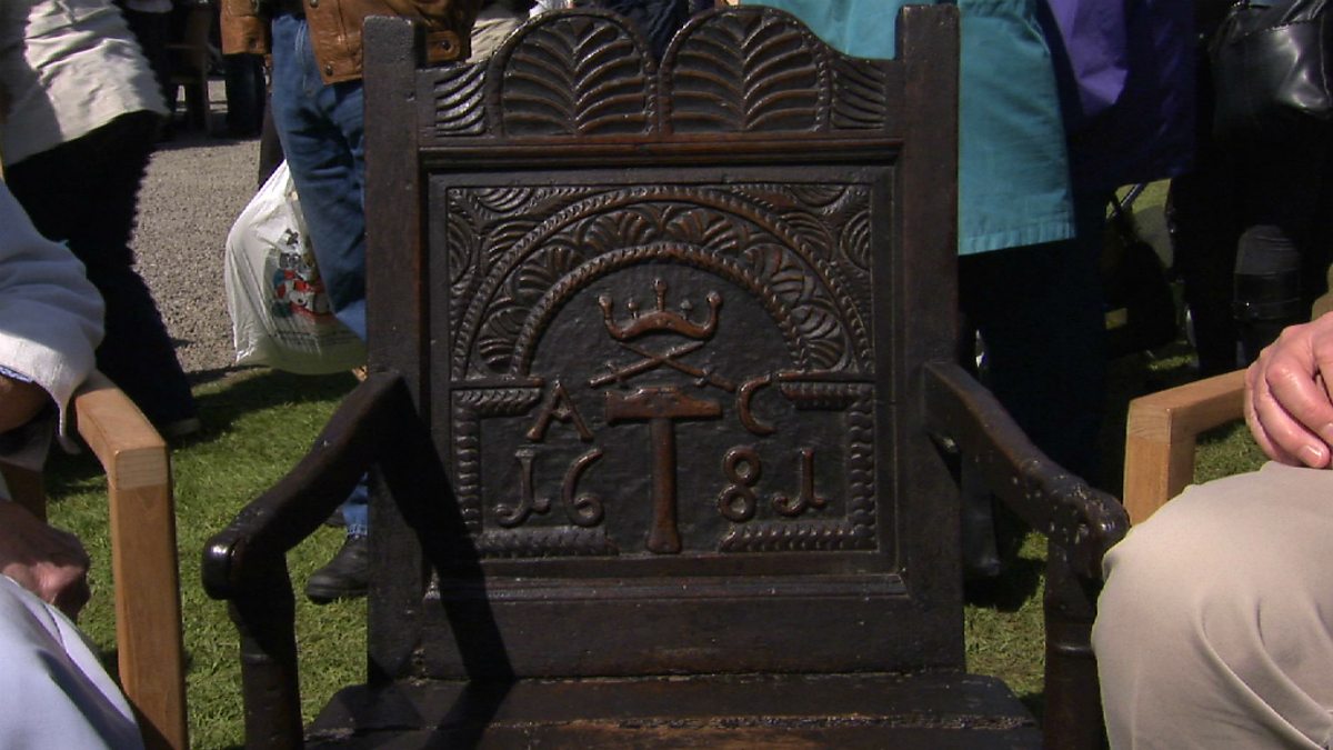 This chair dates from 1681, and is carved in the back with symbols of various trades.