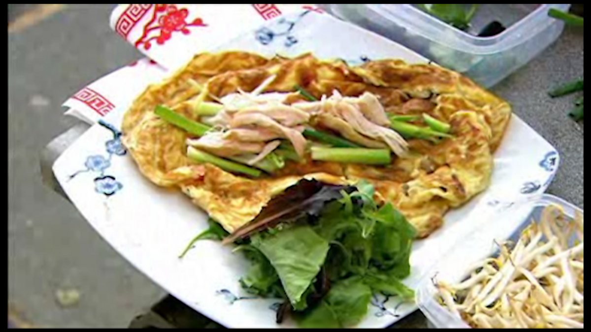 Egg fu yung with roasted red pepper and sweet chilli sauce