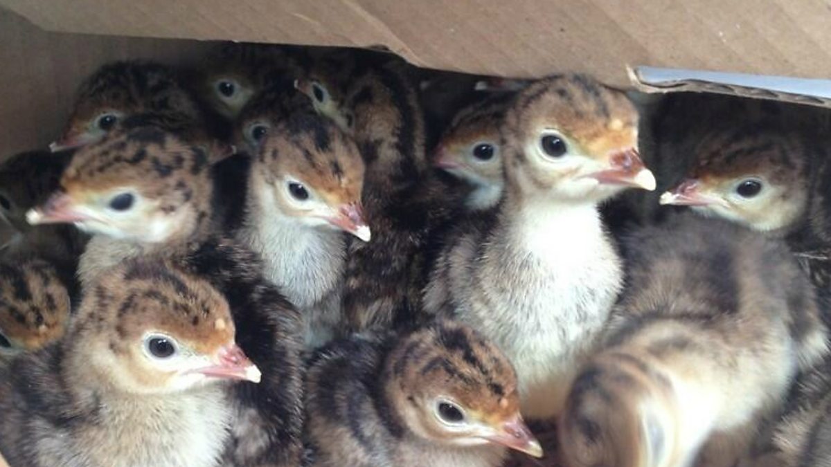 New turkey chicks enjoy the Lincolnshire sunshine.