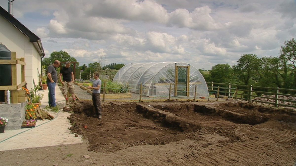 Chris and Colin are with the Hardy's in Dromore - making sure their new raised beds won't be producing novelty vegetables.