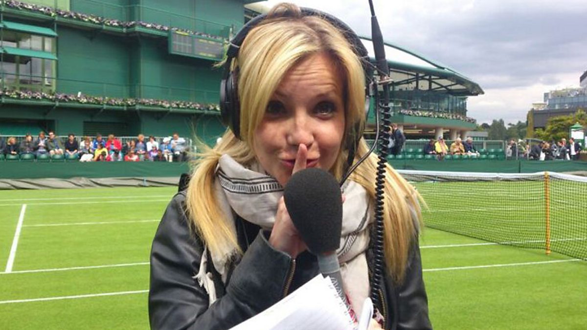 Helen Skelton has to report whispering from amongst the crowd on Court 19.