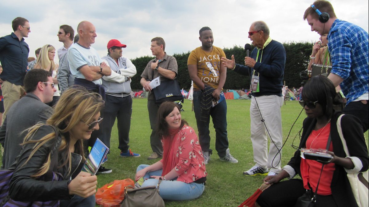 Tennis coach Nick Bollettieri turns life coach to offer advice to people in the queue at Wimbledon, including giving one women a technique to make sure she beats her husband at tennis.