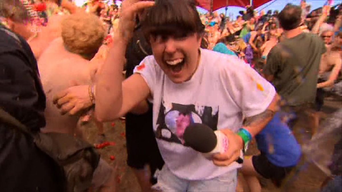 Jen Long takes on the world at the Aztec Temple, armed only with tomatoes at the 2013 Glastonbury Festival